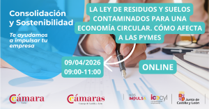 Más información »LA LEY DE RESIDUOS Y SUELOS CONTAMINADOS PARA UNA ECONOMÍA CIRCULAR. CÓMO AFECTA A LAS PYMES 09/04/2026 09:00-11:00 horas. LUGAR: ONLINE. PROGRAMA: ONLINE Basado en la Ley 7/2022, de 8 de abril, de residuos y suelos contaminados para una economía circular. Cambios recientes, nuevas obligaciones y claves prácticas para la adaptación empresarial. Objetivo del curso […]