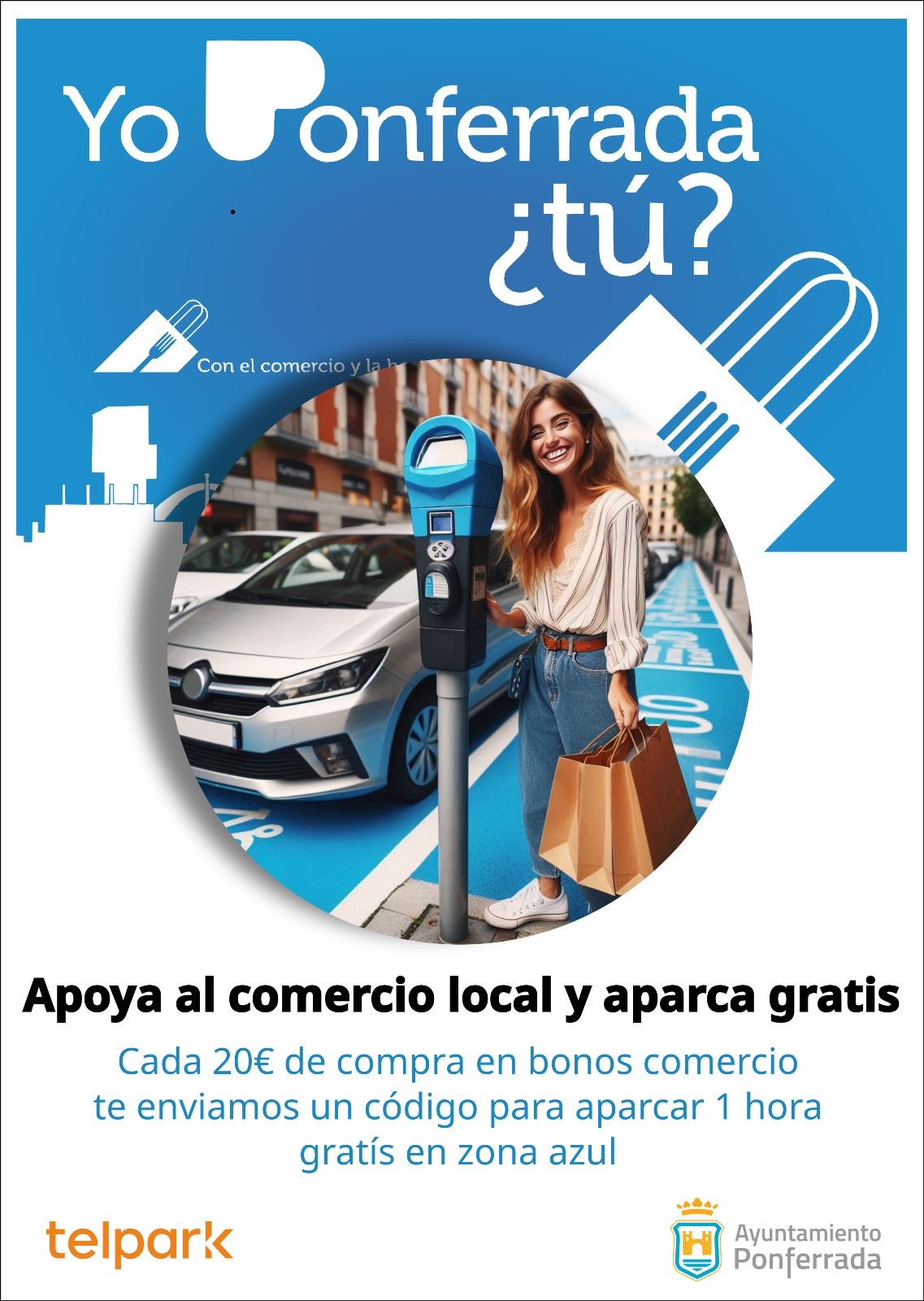 La campaña se presenta bajo el lema: “Apoya al comercio local y aparca gratis”.